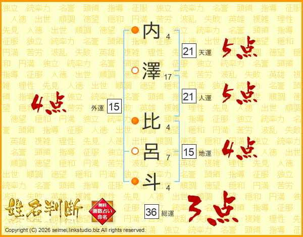 内澤比呂斗さんの天運は21画の5点!