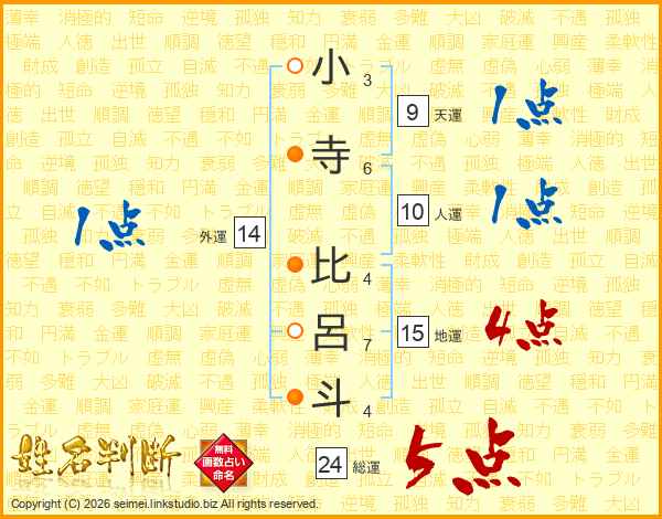小寺比呂斗さんの総運は24画の5点!