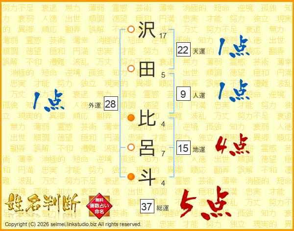 沢田比呂斗さんの総運は37画の5点!