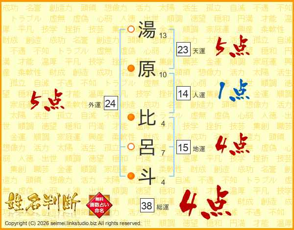 湯原比呂斗さんの総運は38画の4点!
