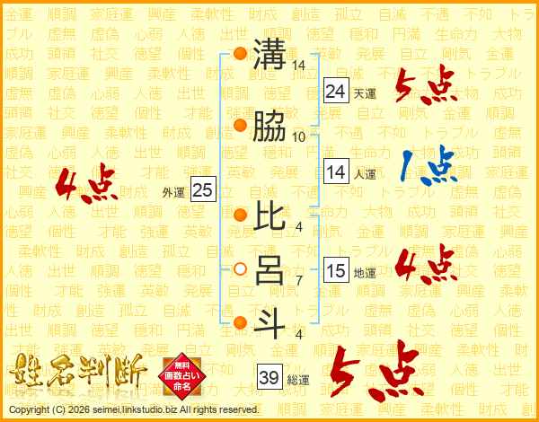 溝脇比呂斗さんの総運は39画の5点!