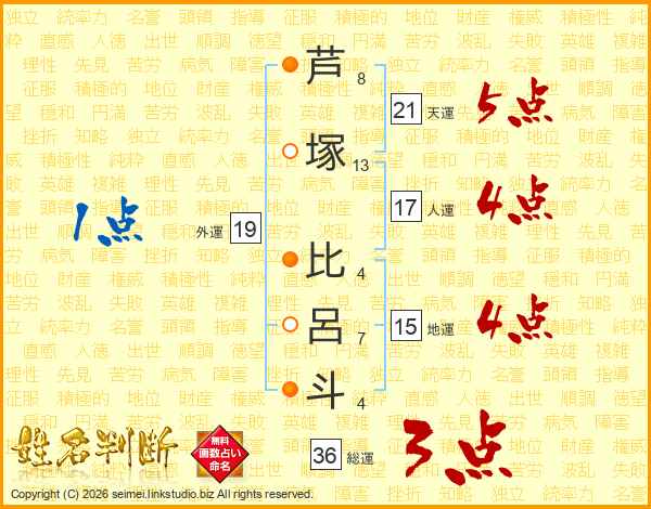 芦塚比呂斗さんの総運は36画の3点!
