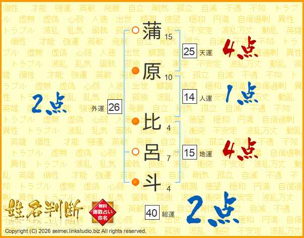 蒲原比呂斗さんの天運は25画の4点!