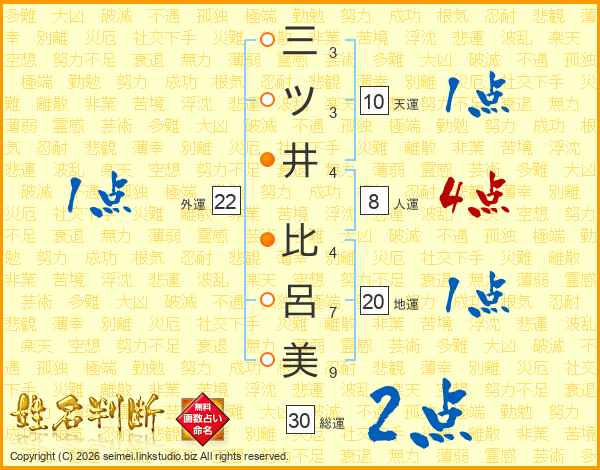 三(3画)ツ(3画)井(4画) 比(4画)呂(7画)美(9画)