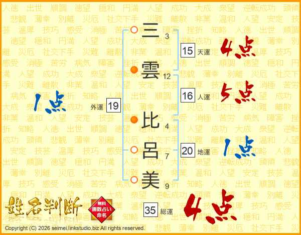 三(3画)雲(12画) 比(4画)呂(7画)美(9画)