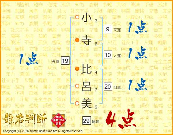 小寺比呂美さんの総運は29画の4点!