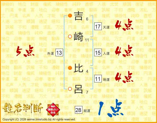 吉(6画)崎(11画) 比(4画)呂(7画)