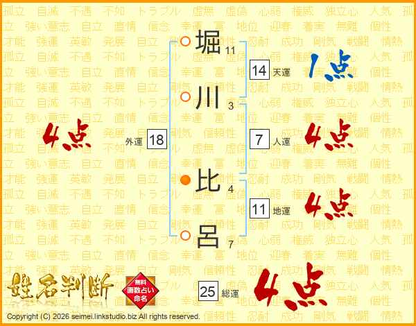 堀川比呂さんの総運は25画の4点!