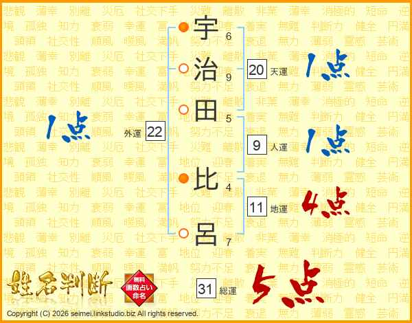宇治田比呂さんの総運は31画の5点!