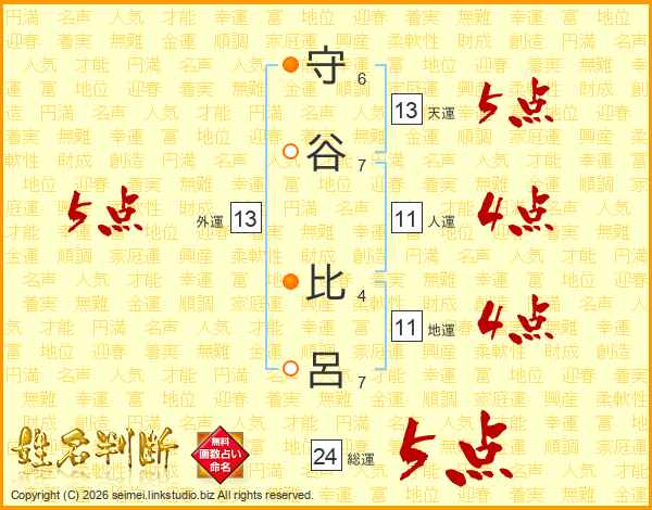 守谷比呂さんの外運は13画の5点!
