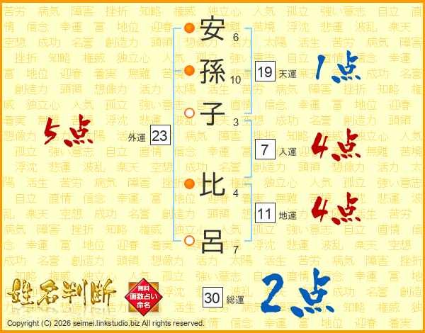 安(6画)孫(10画)子(3画) 比(4画)呂(7画)