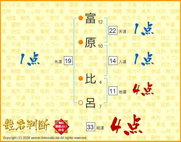 富原比呂さんの総運は33画の4点!