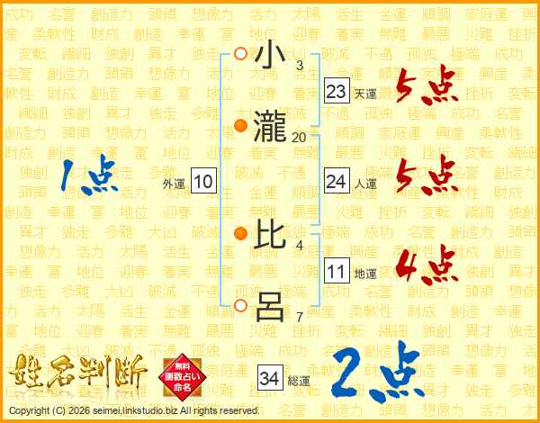 小瀧比呂さんの総運は34画の2点!
