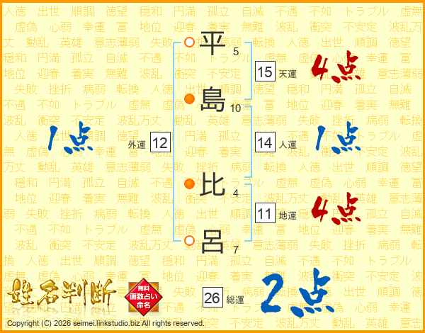 平島比呂さんの総運は26画の2点!