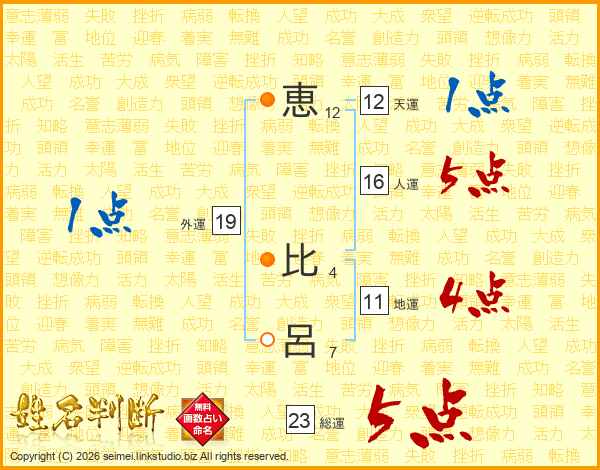 恵(12画) 比(4画)呂(7画)