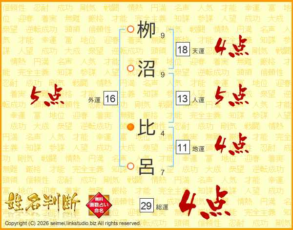 栁沼比呂さんの総運は29画の4点!