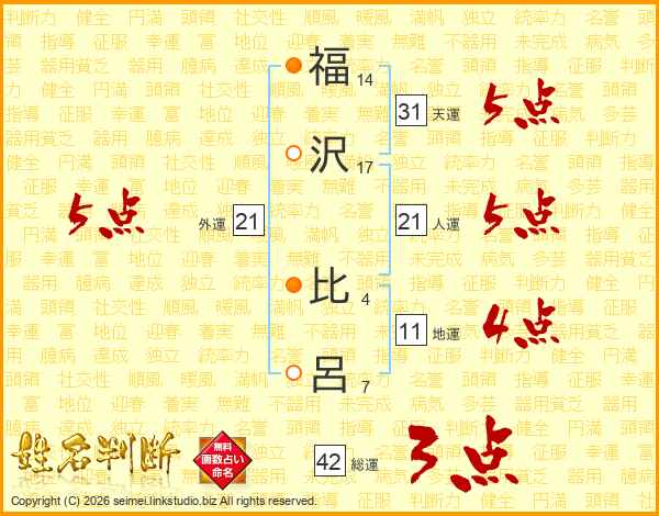 福(14画)沢(17画) 比(4画)呂(7画)