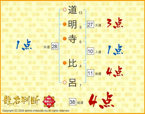 道明寺比呂さんの総運は38画の4点!