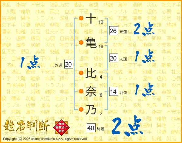 十(10画)亀(16画) 比(4画)奈(8画)乃(2画)