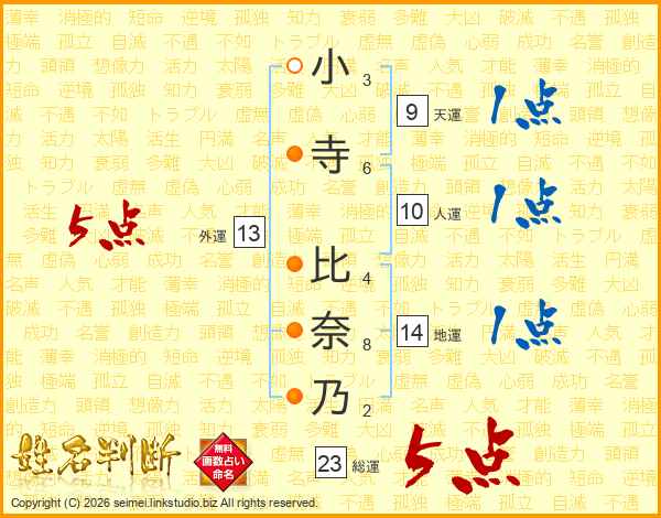 小(3画)寺(6画) 比(4画)奈(8画)乃(2画)