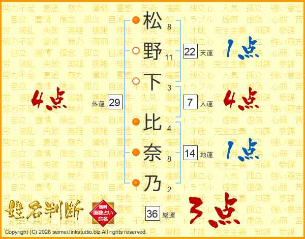 松野下比奈乃さんの人運は7画の4点!