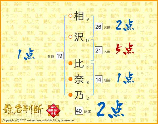 相(9画)沢(17画) 比(4画)奈(8画)乃(2画)