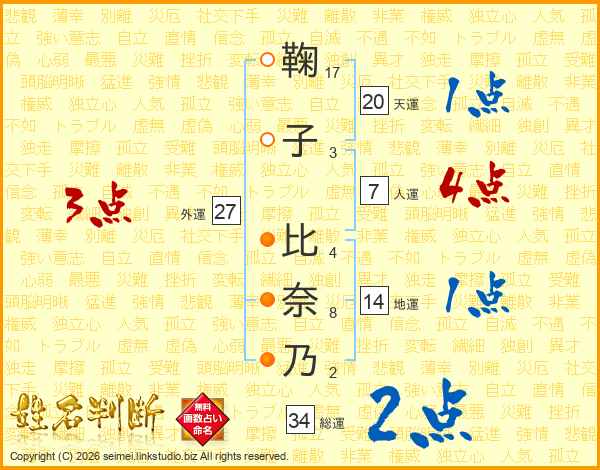 鞠子比奈乃さんの総運は34画の2点!