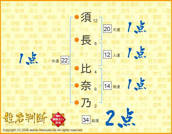 須(12画)長(8画) 比(4画)奈(8画)乃(2画)