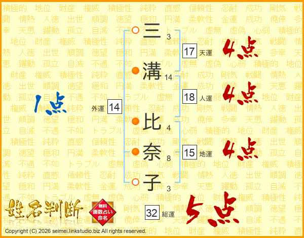 三溝比奈子さんの総運は32画の5点!