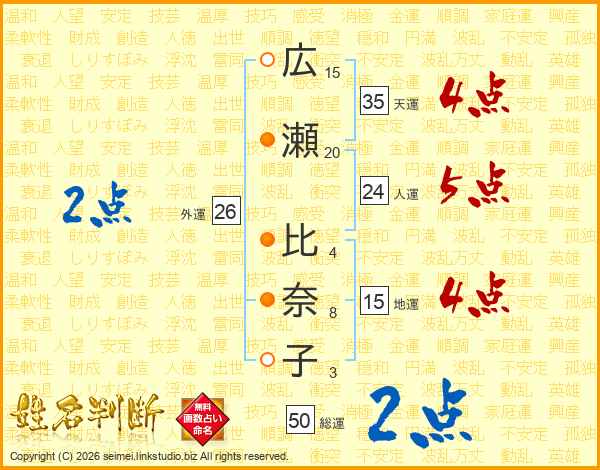 広瀬比奈子さんの総運は50画の2点!
