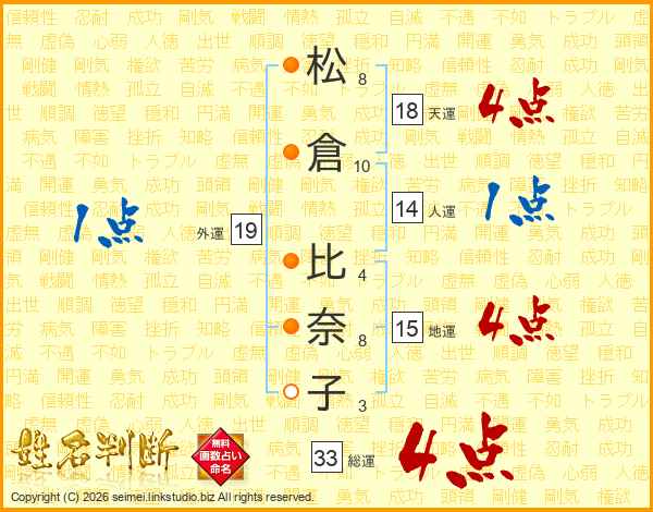 松倉比奈子さんの総運は33画の4点!