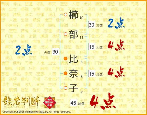 櫛部比奈子さんの総運は45画の4点!