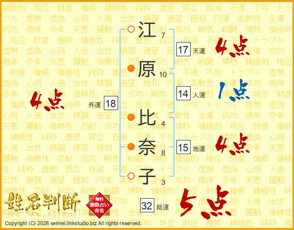 江原比奈子さんの総運は32画の5点!
