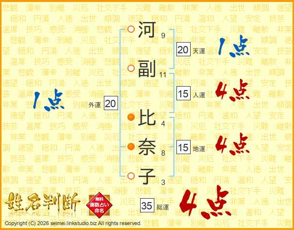 河副比奈子さんの総運は35画の4点!