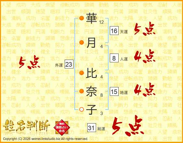 華月比奈子さんの総運は31画の5点!