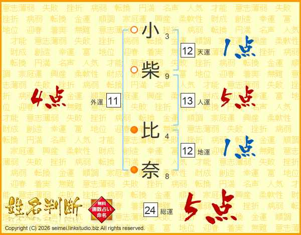 小柴比奈さんの天運は12画の1点!