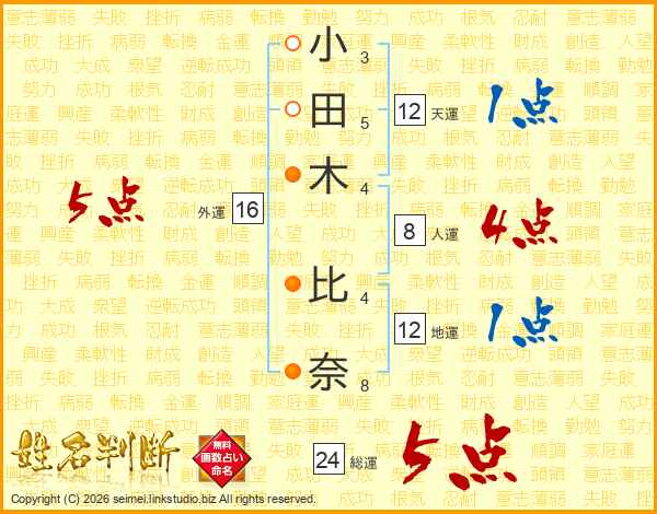 小田木比奈さんの外運は16画の5点!