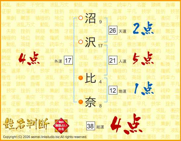 沼沢比奈さんの天運は26画の2点!