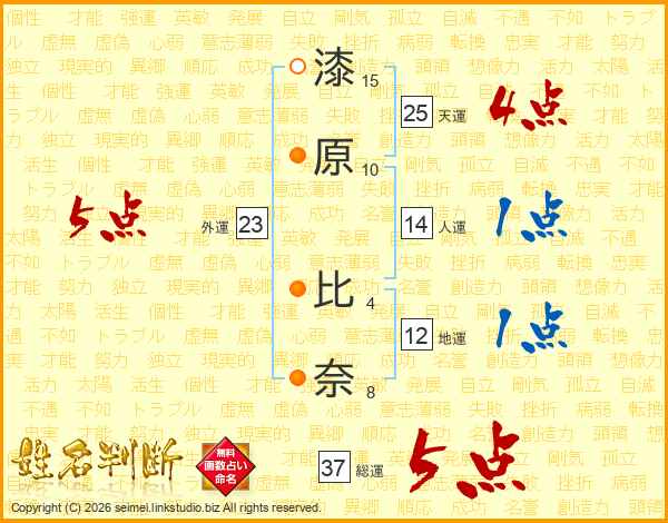 漆原比奈さんの総運は37画の5点!