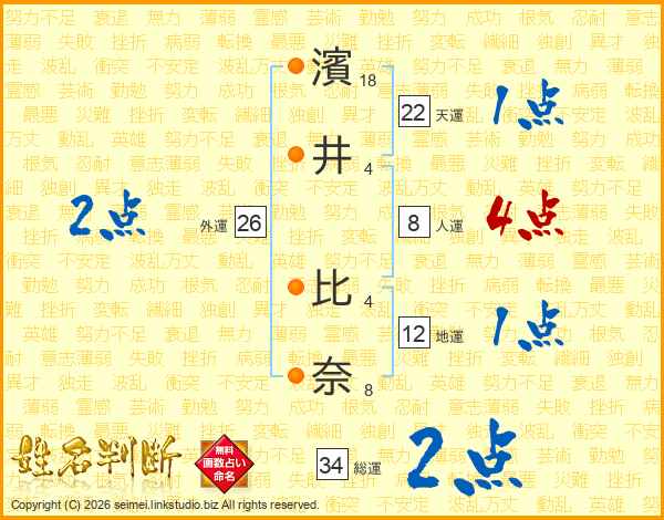 濱井比奈さんの総運は34画の2点!