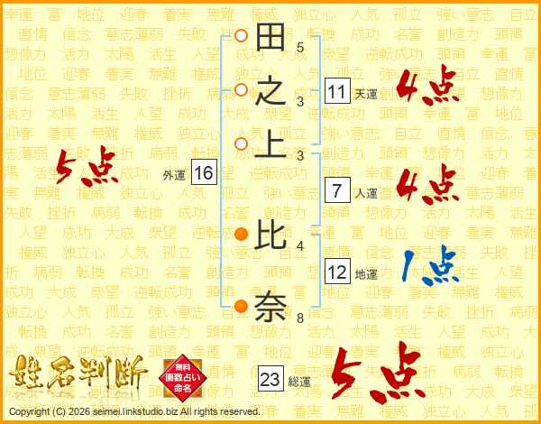 田之上比奈さんの総運は23画の5点!