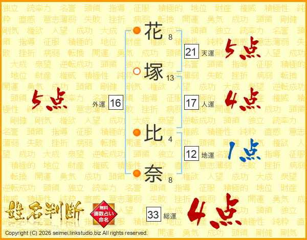 花塚比奈さんの総運は33画の4点!