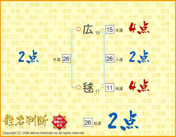 広毬さんの総運は26画の2点!