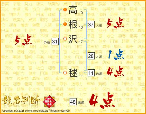 高根沢毬さんの外運は31画の5点!