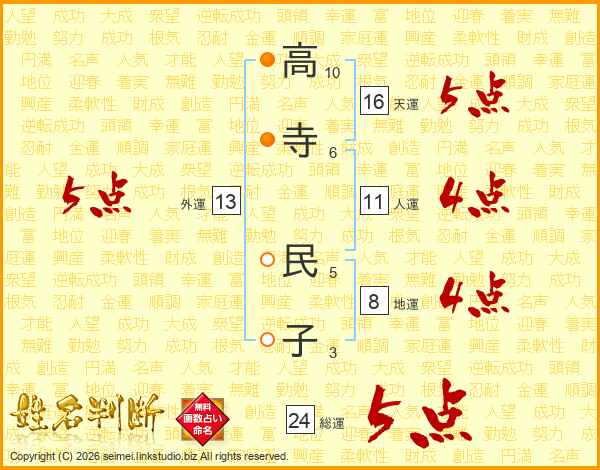 高寺民子さんの総運は24画の5点!