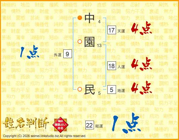 中園民さんの天運は17画の4点!