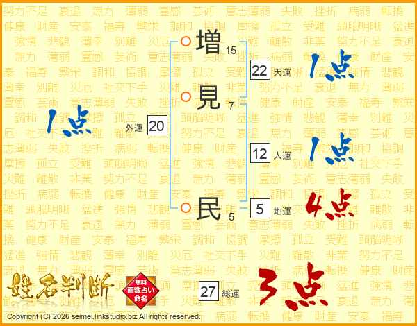 増見民さんの総運は27画の3点!