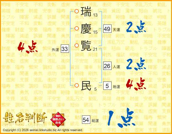 瑞(13画)慶(15画)覧(21画) 民(5画)