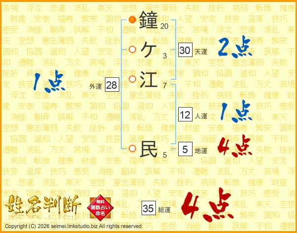 鐘ケ江民さんの総運は35画の4点!