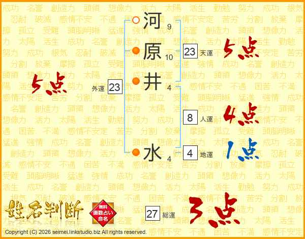 河原井水さんの総運は27画の3点!